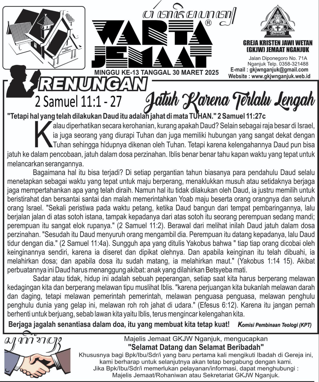 WARTA JEMAAT GKJW NGANJUK 30 MARET 2025 - Warta Jemaat GKJW Nganjuk